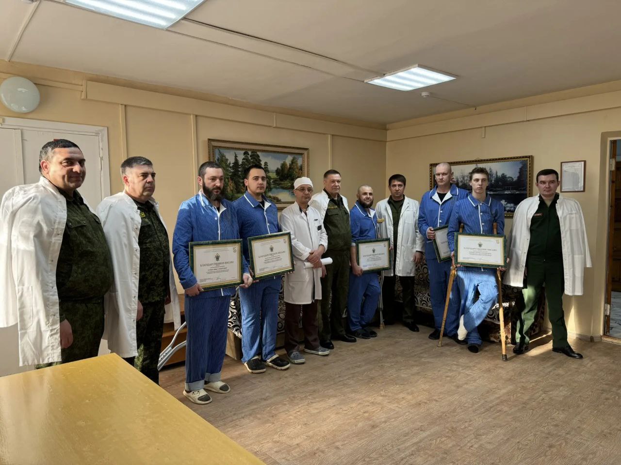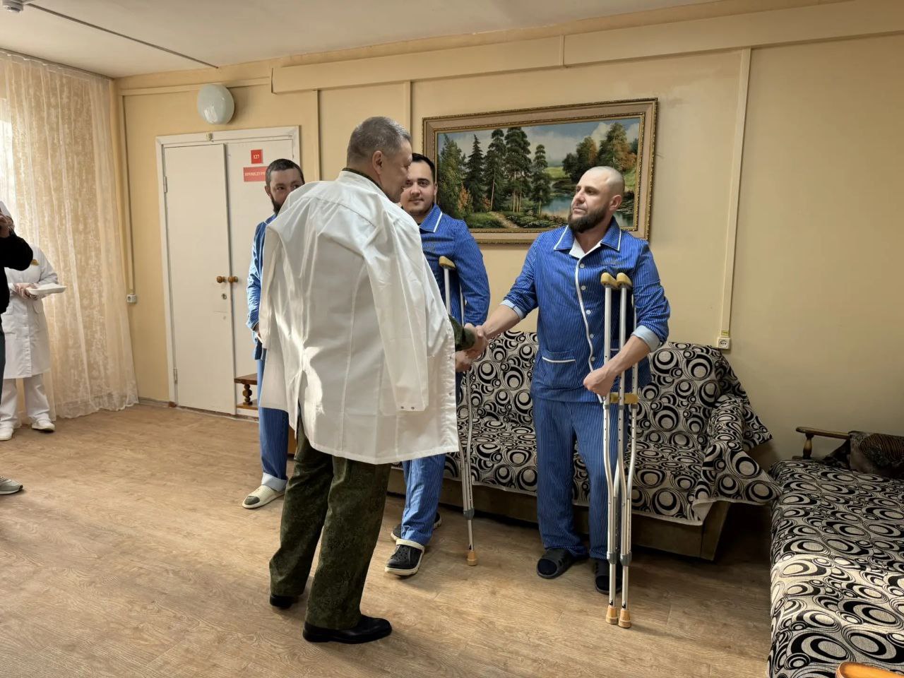 Руководители интересовались ходом лечения бойцов и вопросами, которые их волнуют, в том числе связанными с качеством медицинского обслуживания.