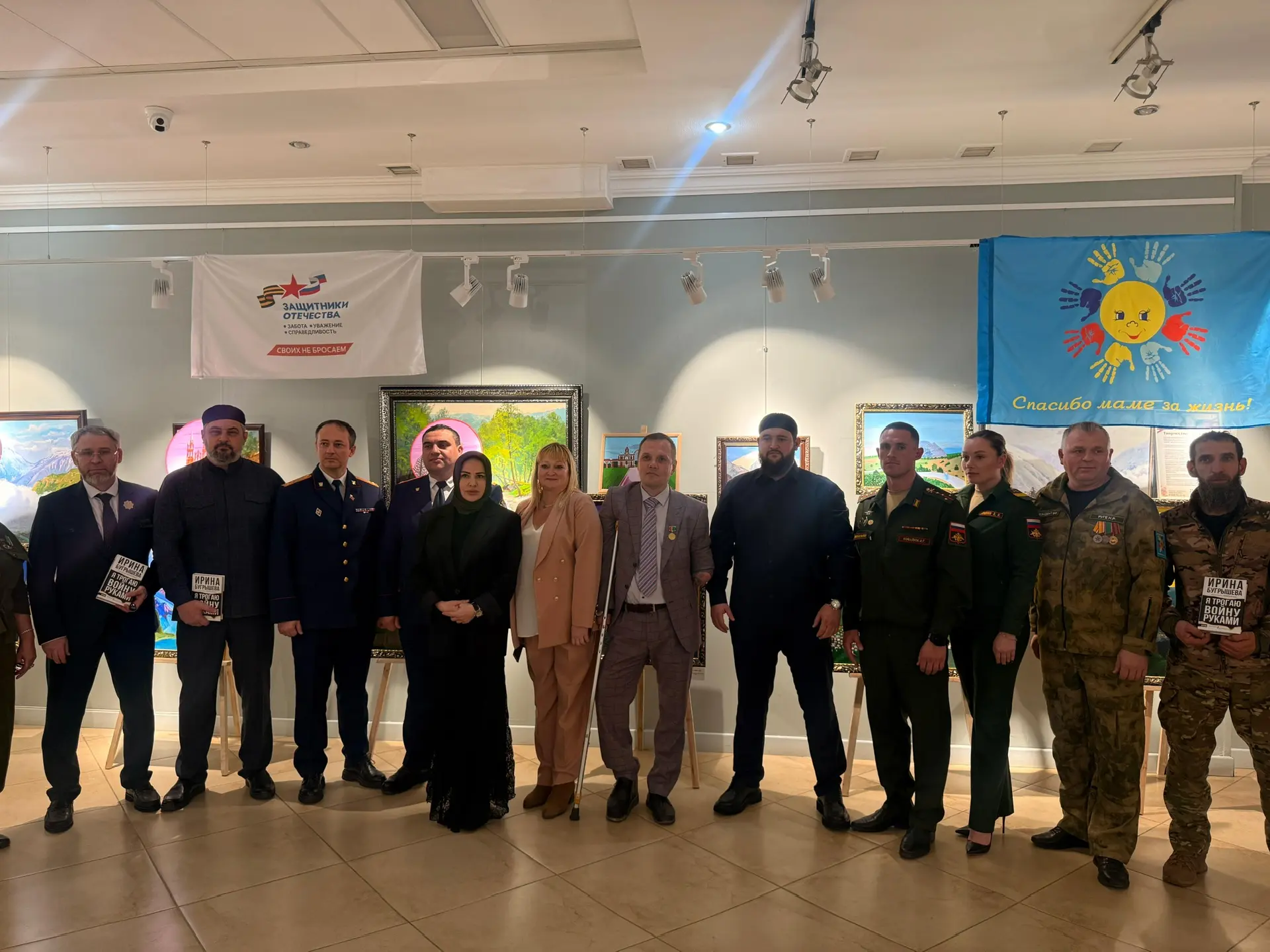 В Государственной галерее имени А.Х. Кадырова при поддержке регионального отделения Государственного фонда «Защитники Отечества» по Чеченской Республике, в рамках проекта «Реабилитация через искусство», состоялось торжественное открытие выставки «Народ единый — Страна непобедимая!».