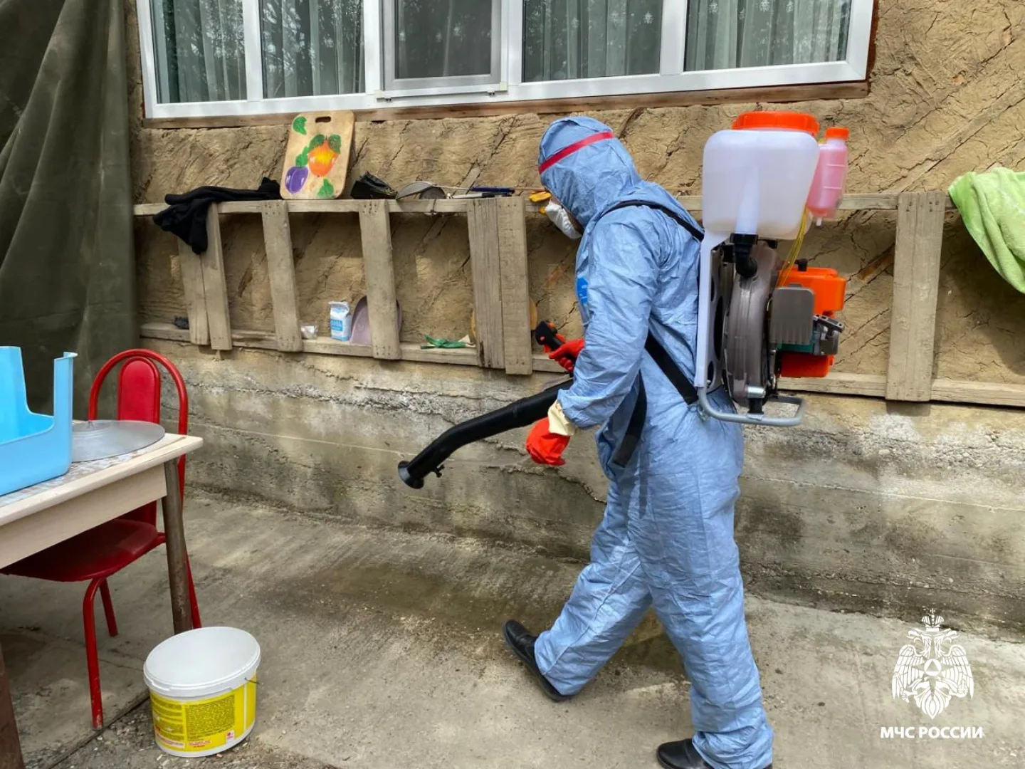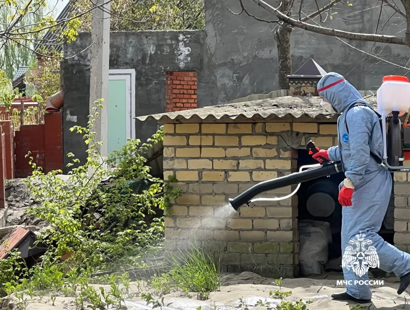 Специалисты Роспотребнадзора при содействии МЧС России проводят дезинфекционные работы на жилых территориях, которые ранее были подтоплены.