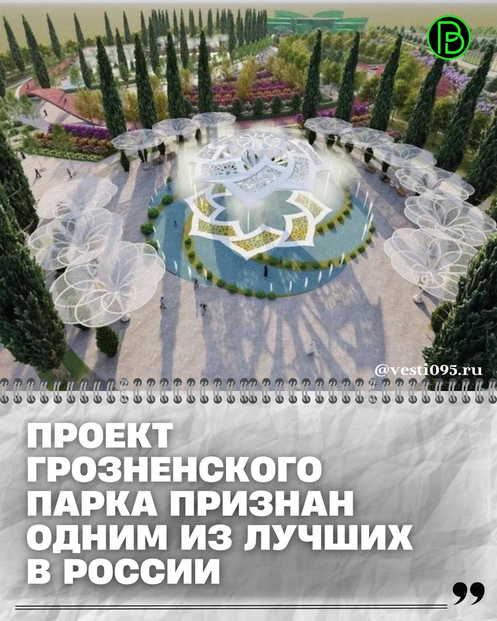 Проект парка имени В. Путина в Грозном удостоен серебряного диплома премии AOK'LD AWARD 2026 в номинации «Лучший нереализованный проект общественного пространства площадью более 1 га».