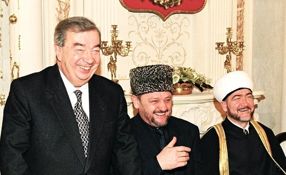 Встретилось интересное архивное фото, которое и послужило поводом для этой публикации, на нём:Евгений Максимович ПРИМАКОВ (дипломат, премьер-министр и министр иностранных дел РФ), Ахмат-Хаджи КАДЫРОВ (Первый президент Чеченской Республики), муфтий шейх Равиль ГАЙНУТДИНОВ (председатель Духовного управления мусульман Российской Федерации).