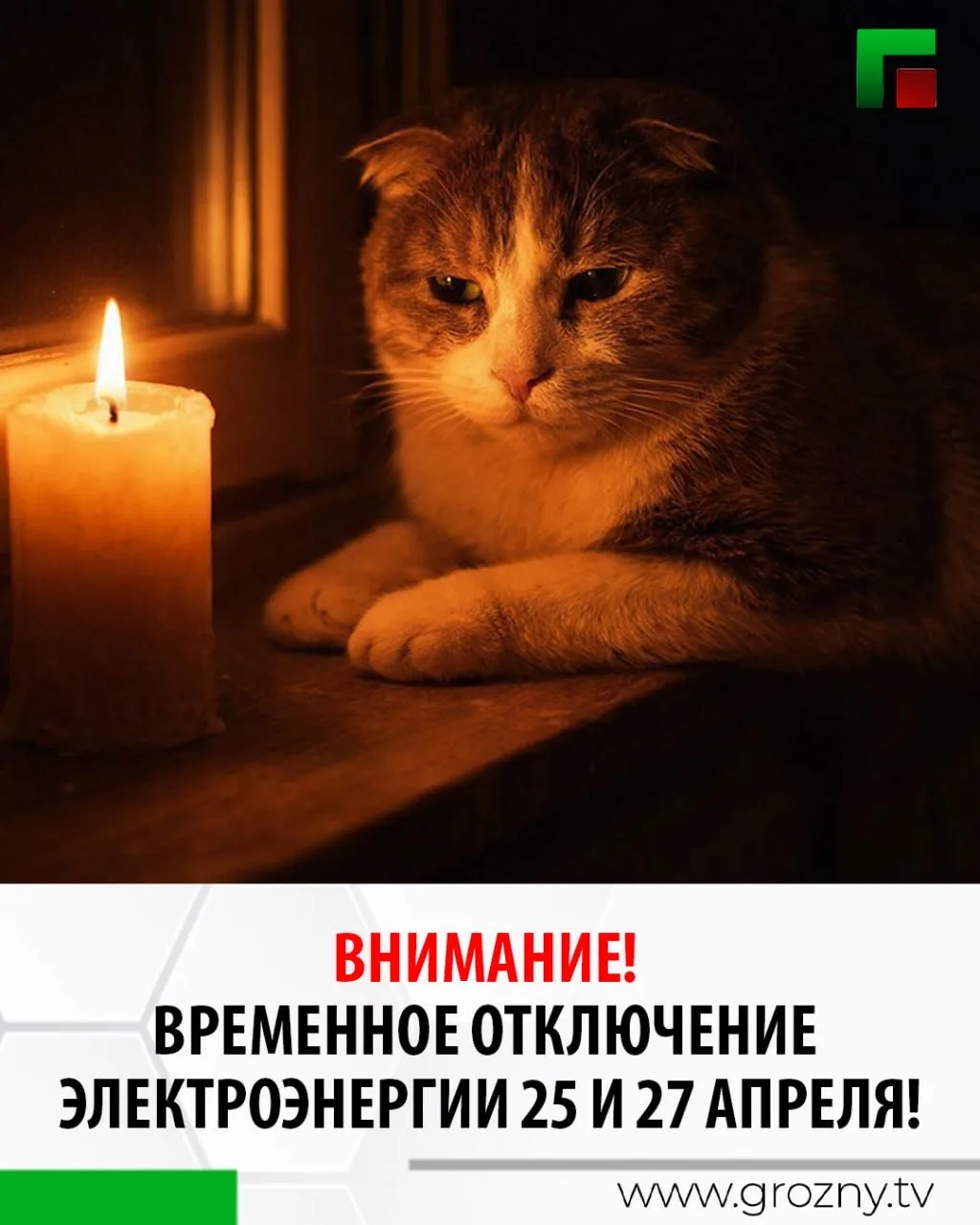 АО «Чеченэнерго» информирует о временном отключении электроэнергии 25 и 27 апреля в связи с проведением ремонтно-профилактических мероприятий на объектах электросетевого хозяйства предусмотрено отключение электроэнергии по графику.