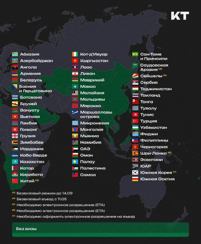 Бразилия, Вьетнам, Китай, Мальдивы, Марокко, Сербия, Таиланд, Турция, ЮАР и другие. Ещё 37 стран предлагают упрощённый въезд — по электронной визе или визе по прибытии. В их числе Египет, Индия, Индонезия, Камбоджа, Кения, Мексика, Танзания, Южная Корея и другие.
