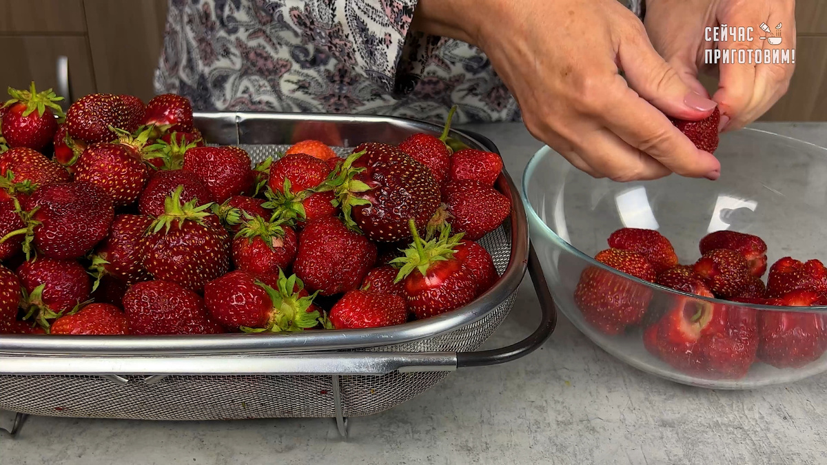 Клубнику тщательно промывают под проточной водой и просушивают на полотенце. Плодоножки аккуратно удаляют только после сушки — это помогает сохранить форму ягод и избежать лишней влаги.