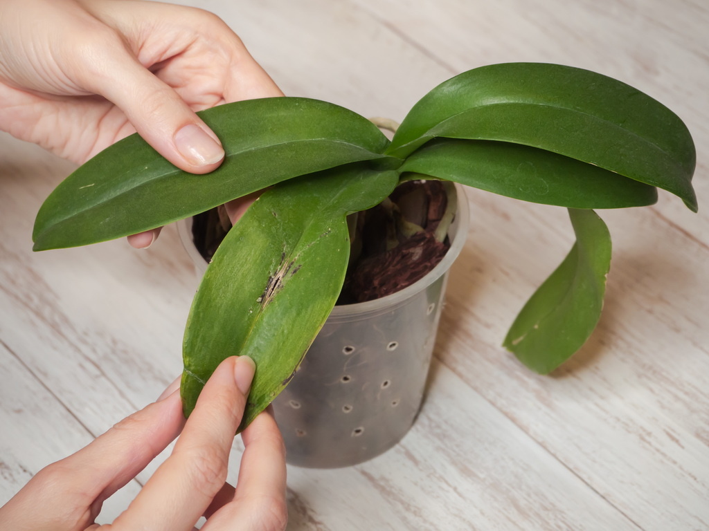 Листья орхидеи также могут пострадать от неправильно введённых удобрений. Растение негативно реагирует как на недостаток, так и на избыток питательных веществ.