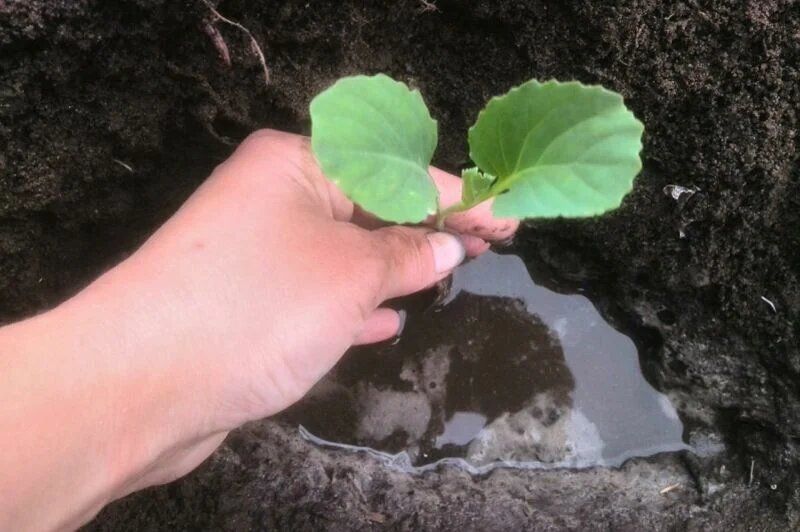 Соединяют древесную золу, измельчённую яичную скорлупу, горчицу и суперфосфат по столовой ложке каждого ингредиента. Всё перемешивают до однородности и засыпают состав в лунку, затем слегка засыпают перегноем. После этого лунку поливают водой и в ухоженной земле аккуратно размещают рассаду.
