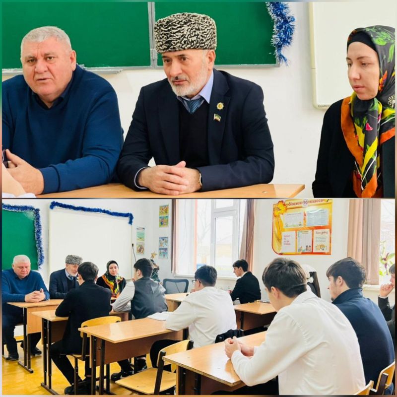Депутат Парламента Чеченской Республики Сулумбек Демилханов совместно с председателем Совета депутатов Шелковского муниципального района Борисом Наиповым провели встречу с учащимися СОШ ст. Новощедринская Шелковского муниципального района.