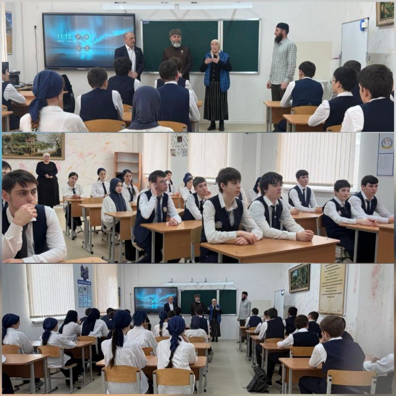 В рамках реализации партийных проектов «Новая школа», «Выбор сильных» и «Историческая память» депутаты Парламента Чеченской Республики Арби Джафаров и Мохмад Ханбиев совместно с исполнительным секретарем Веденского отделения Партии «Единая Россия» - Зухрой Дадакаевой и активистами партии провели в школе урок мужества, приуроченный ко Дню защитника Отечества.