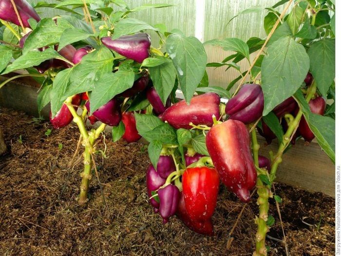 Плоды сорта отличает округло-пирамидальная форма, удобная для фарширования. Фиолетовая окраска на стадии технической спелости и глубокий красный цвет в полной зрелости делают этот сорт привлекательным на грядке и в тарелке. Мякоть плодов сочная, а стенки имеют среднюю толщину, что подходит как для свежих салатов, так и для консервации. Этот сорт позволяет сохранить витамины и придаст яркий вкус любому блюду.