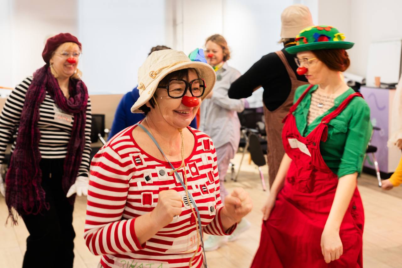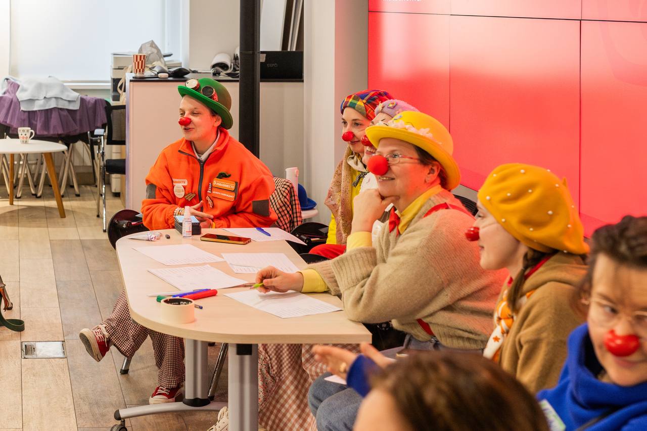 Участники раскрывались, освобождались от зажимов, играли и шалили, пели и танцевали, слушали реальные истории, которыми наполнены будни красноносой команды. Мы говорим всем огромное спасибо за интерес, доверие, вовлеченность, открытость, гибкость, готовность учиться новому.