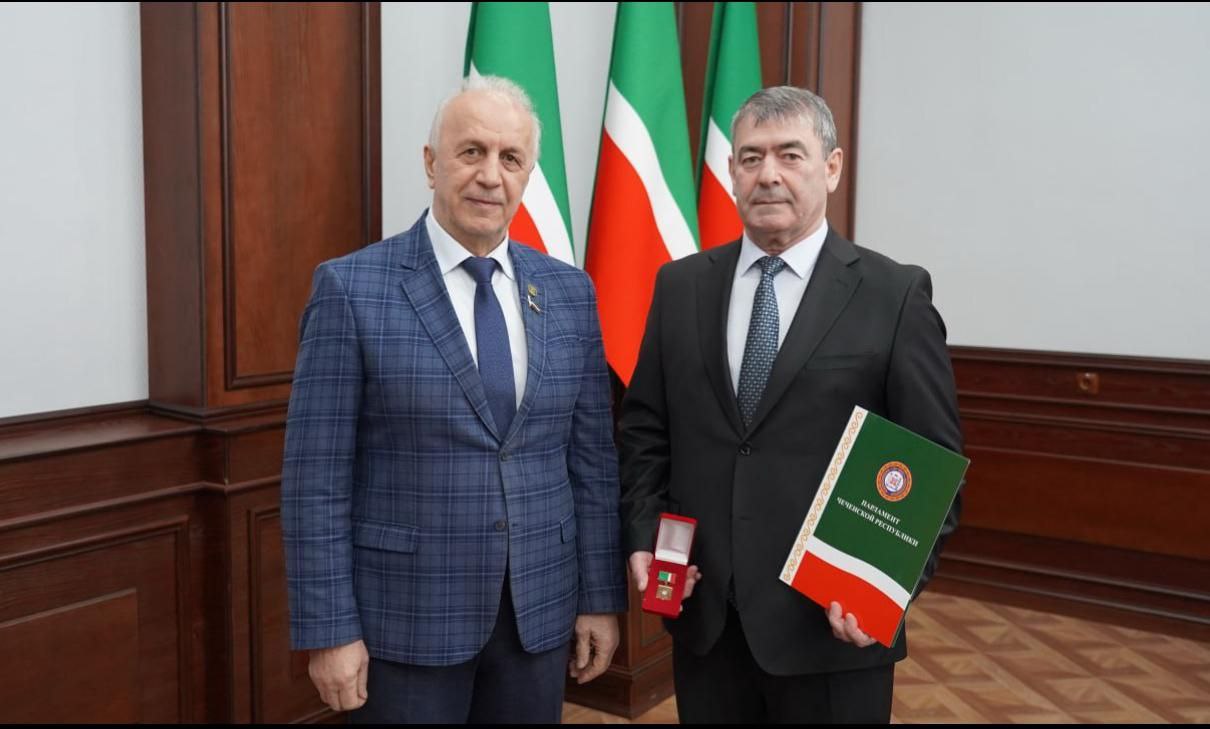 Конструктивная беседа Б.А. Хазбулатова с А.А. Абумуслимовым завершилась награждением ученого Почетной грамотой Парламента Чеченской Республики за многолетнюю плодотворную научную работу и в связи с юбилейной датой рождения.