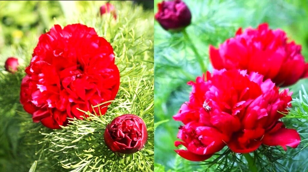 Пион тонколистный радует не только ярким цветением, но и декоративной листвой, которая активно растёт весной. Кусты, высота которых достигает 30-50 см, радуют глаз пышными зелеными листиками, напоминающими хвойные иголки. Эти цветы радуют наступлением весны, распускаясь вместе с другими раннецветущими растениями.