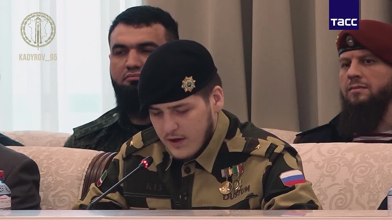 Адам Кадыров в погонах майора выступил на совещании с командирами силовых подразделений Чечни. Видео с совещания было опубликовано в соцсетях Рамзана Кадырова.