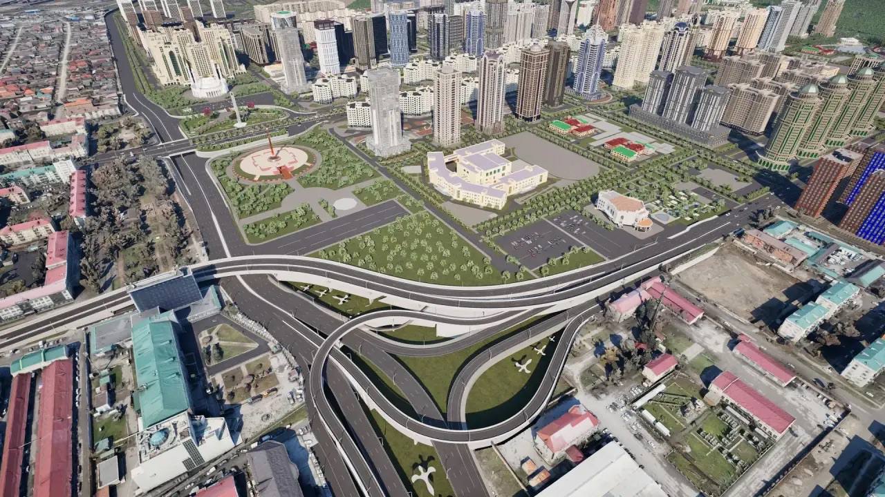 В Грозном продолжается строительство двух многоуровневых транспортных развязок. Объекты возводят на пересечении улицы Назарбаева с проспектом Путина, а также на пересечении улицы Назарбаева со Старопромысловским шоссе.