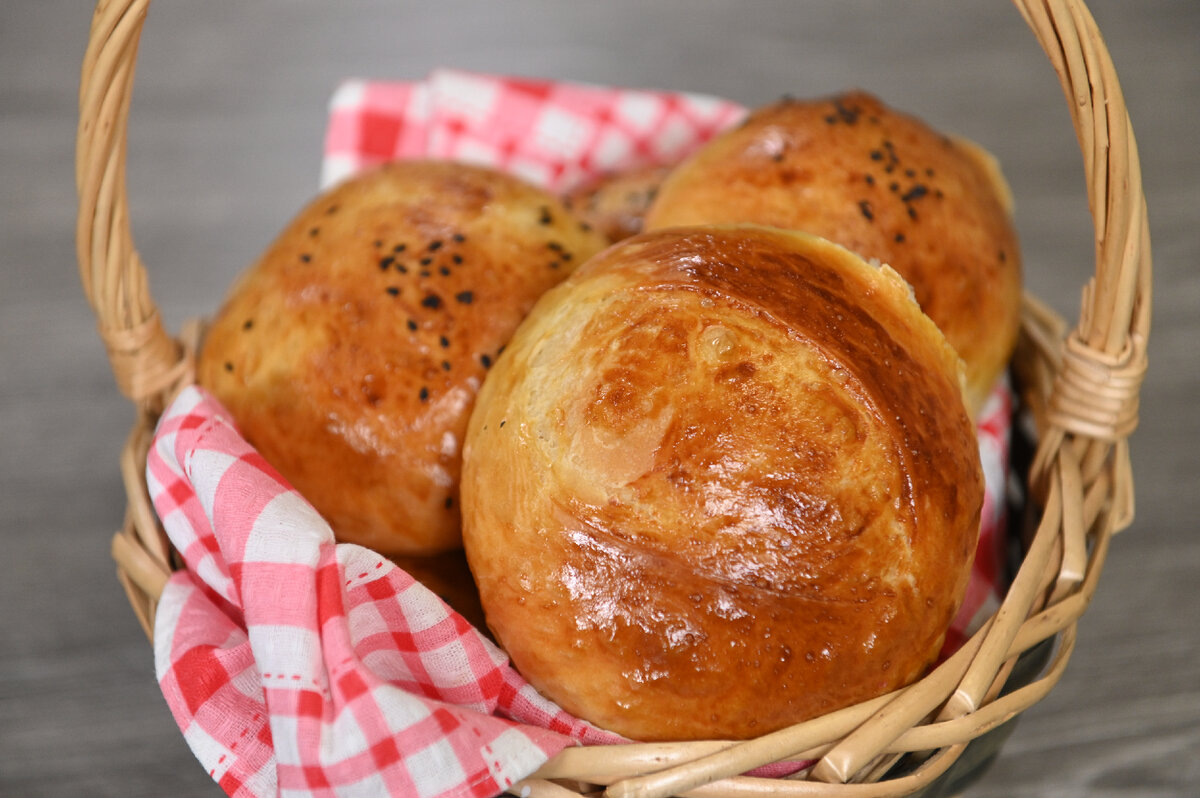 5. Сделайте в каждом шарике небольшой надрез и оставьте их «отдохнуть» на 20-40 минут, накрыв пленкой. Смажьте яичным желтком и выпекайте при 180 градусах 15-20 минут.