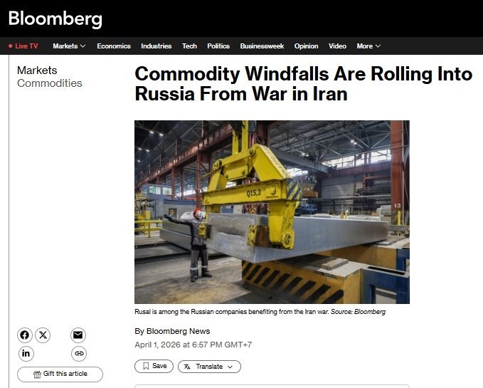 Но нефтью дело не ограничивается. Агентство отмечает, что доходы России растут по широкому спектру товаров, которые традиционно перевозились через Ормузский пролив. С начала войны в Иране стоимость алюминия подскочила на 12%, достигнув четырехлетнего максимума, а цена мочевины выросла почти на 75%.