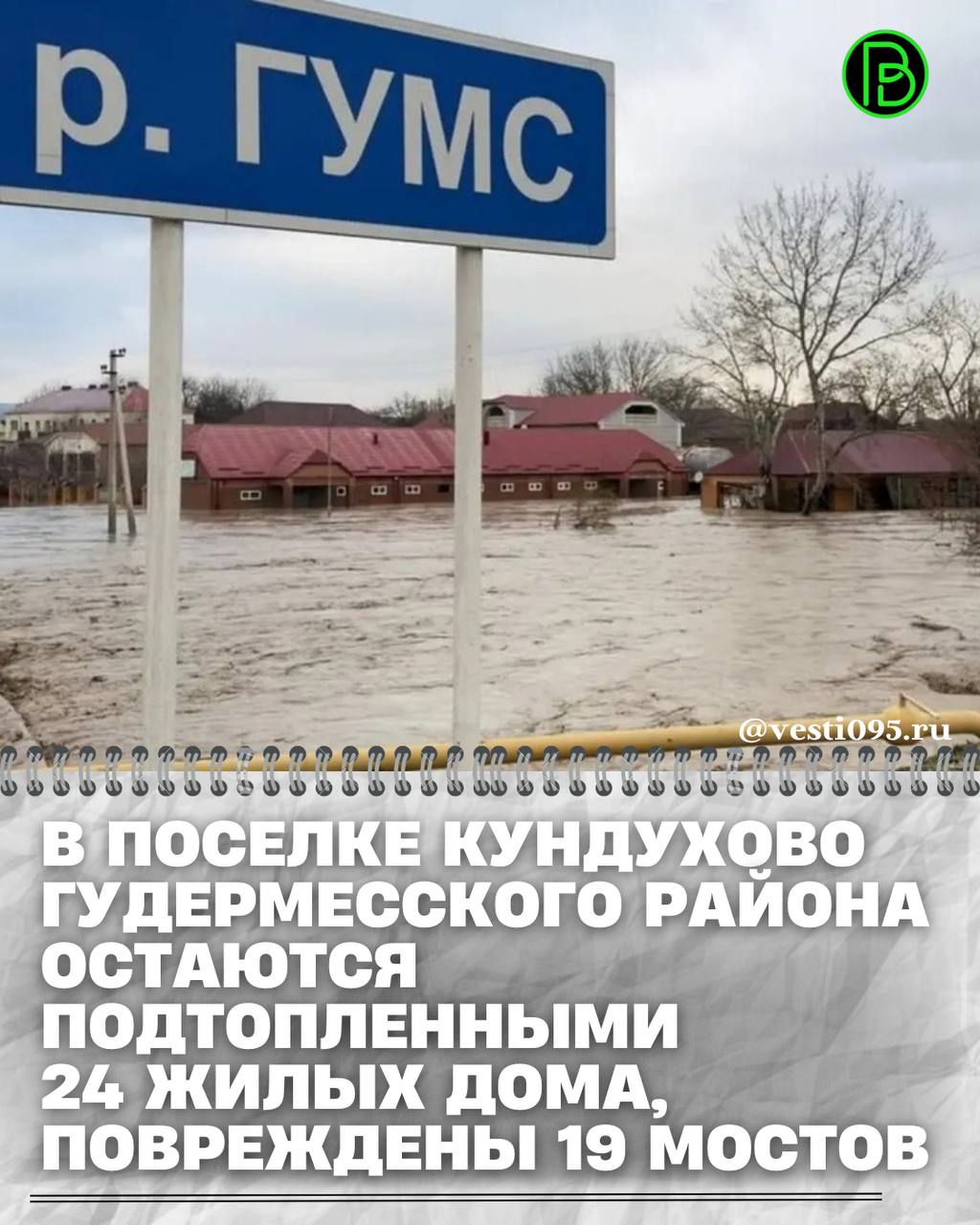 В Чеченской Республике в населенном пункте Кундухово Гудермесского района остаются подтопленными 24 жилых дома, повреждены 19 мостов.