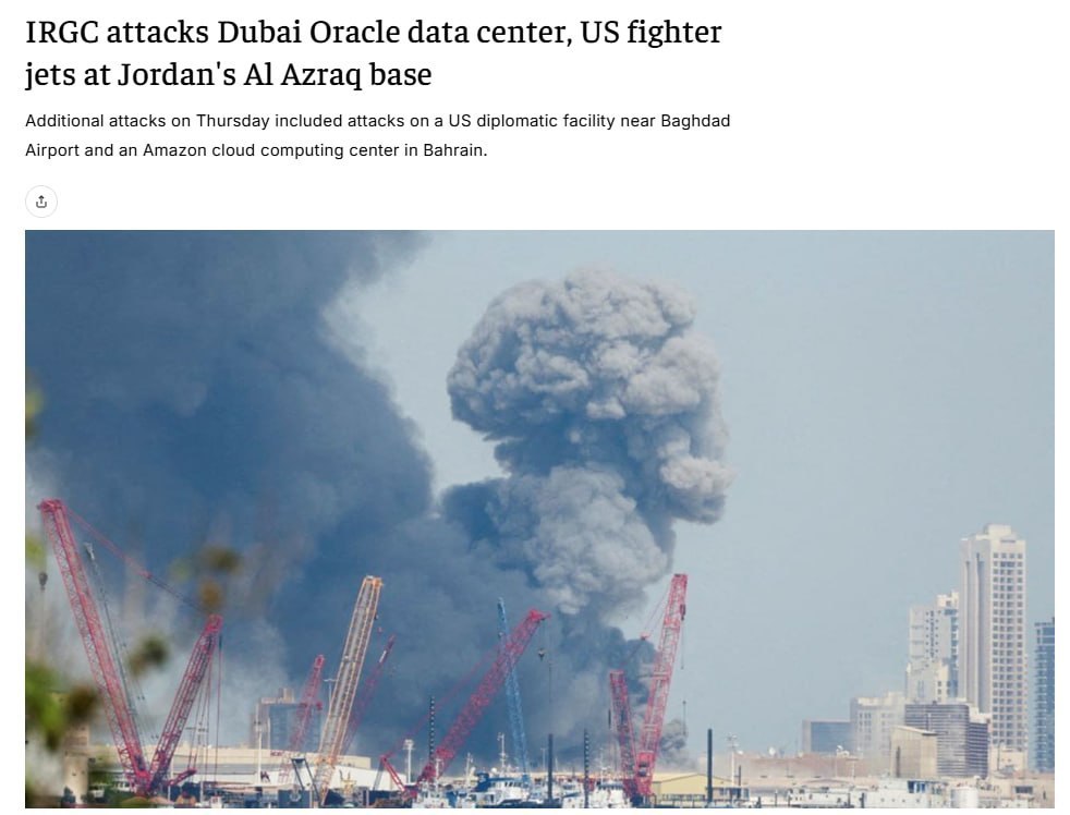 Как сообщает Jerusalem Post, нанесены удары по дата-центру Oracle в Дубае и центру облачных вычислений Amazon в Бахрейне. В работе сервисов отмечаются масштабные сбои.