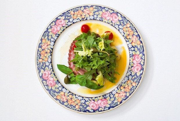 8. Украсить каперсами, листьями базилика и сельдерея, поперчить и подать к столу, пока блюдо еще теплое.