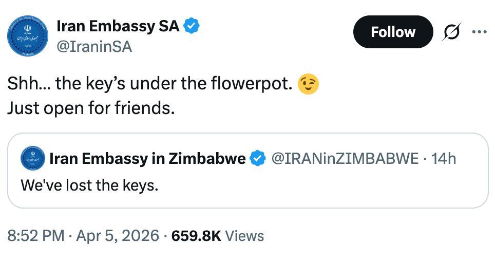 Иранские посольства троллят Трампа в соцсети X после грозного призыва президента США открыть Ормузский пролив.