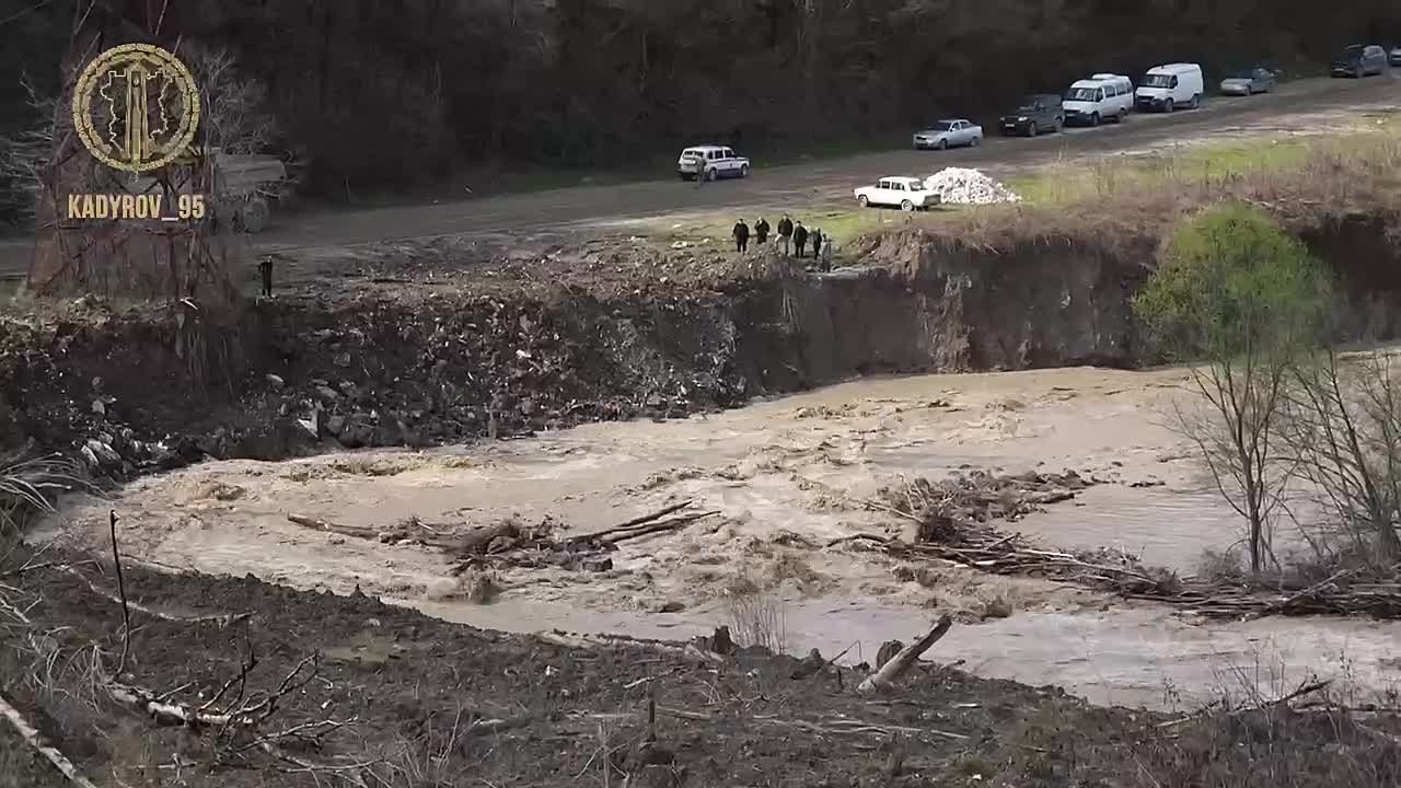 Кадыров отметил, что здесь ведётся активная расчистка дорожного полотна, укрепление откосов и восстановление проезда.