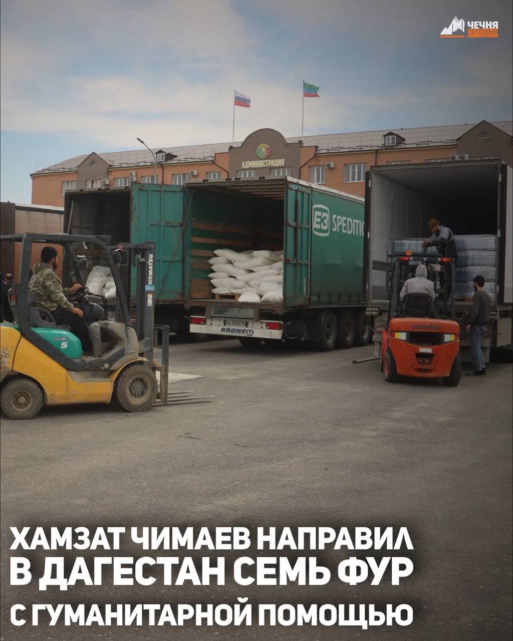 Семь грузовых автомобилей с гуманитарной помощью направлены из Чеченской Республики в Республику Дагестан от чемпиона UFC Хамзата Чимаева, передает с места событий корреспондент ИА «Чечня Сегодня».