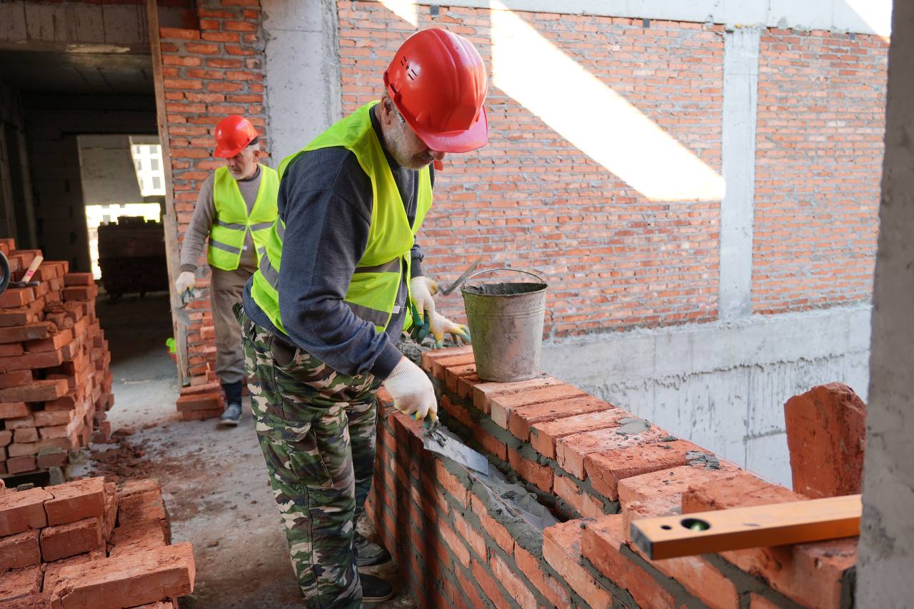 В настоящее время на объекте ведутся работы по устройству кровли, кирпичной кладки стен и перегородок.