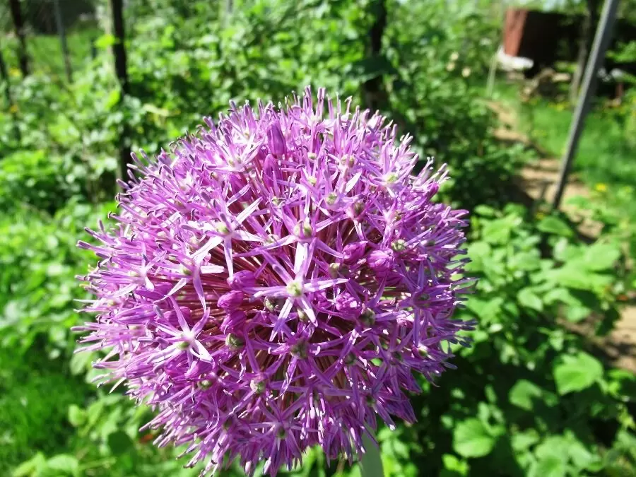 Чеснок Суворова уже успел завоевать популярность среди садоводов благодаря своему не только вкусовым характеристикам, но и декоративному виду. Особенно эффектно это растение выглядит во время цветения, когда его высокий цветонос украшает ярко-фиолетовый шарообразный бутон.