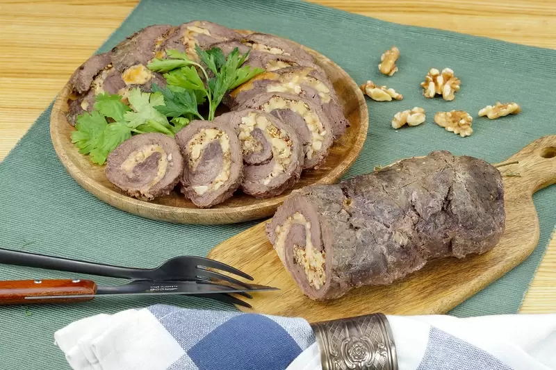 Этот аппетитный рулет из конины — не просто блюдо, а настоящая кулинарная находка. Его аромат и насыщенный вкус завоевали сердца многих, а за счет своей пищевой ценности он становится все более популярным на столах любителей здорового питания. Конина, известная своей плотной текстурой и минимальным содержанием жира, придает рулету нежность и великолепный внешний вид в нарезке. Это блюдо идеально подойдет как для праздничного застолья, так и для обыденного ужина.
