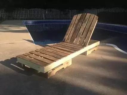 Шезлонг состоит из сиденья и регулируемой спинки. Первая паллета станет основой сидения. Вторую паллету следует распилить пополам — одна часть станет спинкой, а другая может послужить для подлокотников или небольшого столика. Для крепления спинки нужно установить два отрезка бруса длиной около 80 — 100 см по бокам сидения. Эти элементы помогут зафиксировать спинку и менять её угол наклона.