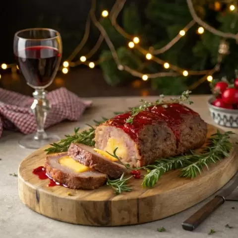 Этот мясной рулет с начинкой не оставит равнодушным никого. Внутри – нежный сыр, а сверху – ароматный соус из красного вина, который сделает блюдо еще более аппетитным.