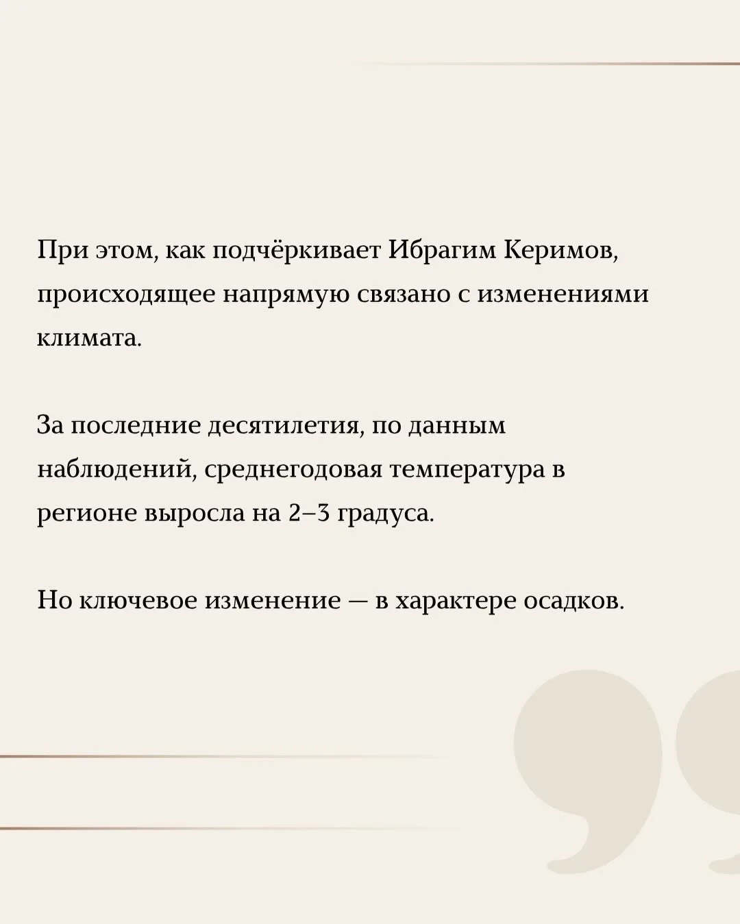 Как рассказал ИА «Чечня Сегодня» профессор, заслуженный геолог РФ, заведующий кафедрой «Экология и природопользование» ГГНТУ Ибрагим Керимов, происходящее нельзя рассматривать как случайность — за этим стоят как природные закономерности, так и более глубокие климатические изменения.