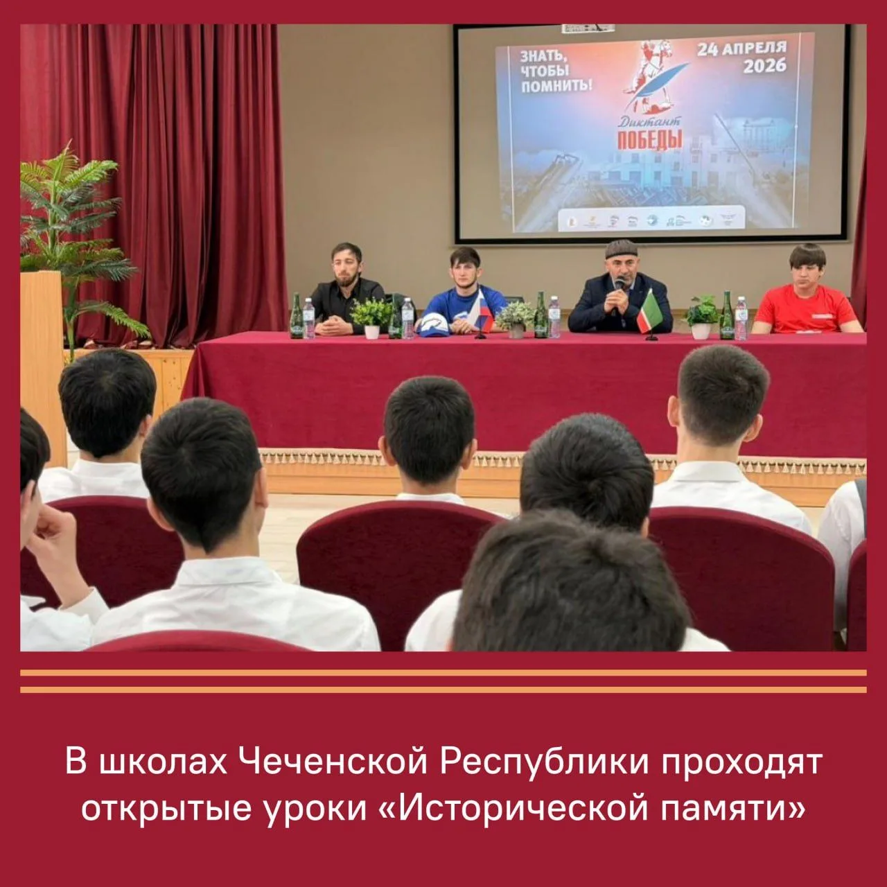 В Чеченской Республике проходят открытые уроки для школьников 8-11 классов, посвященные 20-летию проекта «Историческая память». Уроки направлены на воспитание патриотизма и уважения к истории.
