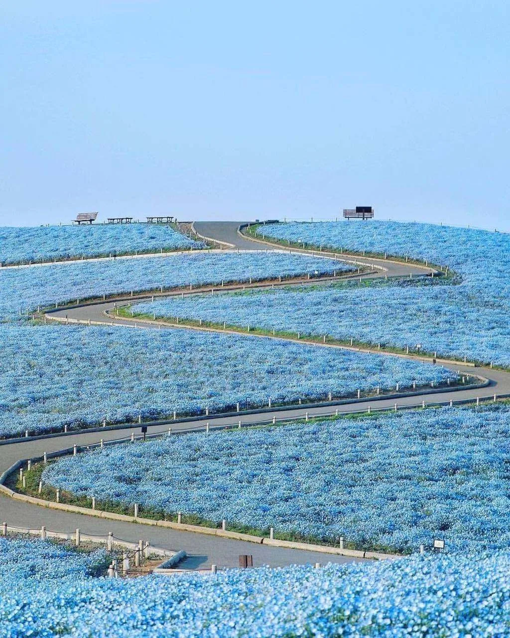 В Японии начался сезон цветения голубой немофилы — и это максимально красивое и кинематографичное зрелище.