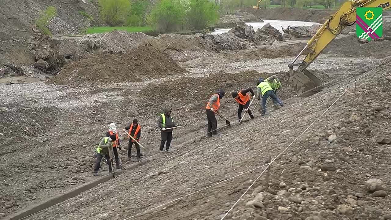 Сегодня здесь продолжаются строительные работы по возведению берегоукрепительных сооружений вдоль реки Фортанга. Сейчас специалисты активными темпами ведут работы, которые надежно защитят берега от размывания сильными потоками воды. Это позволит обезопасить жителей прибрежных домов от возможных чрезвычайных ситуаций.