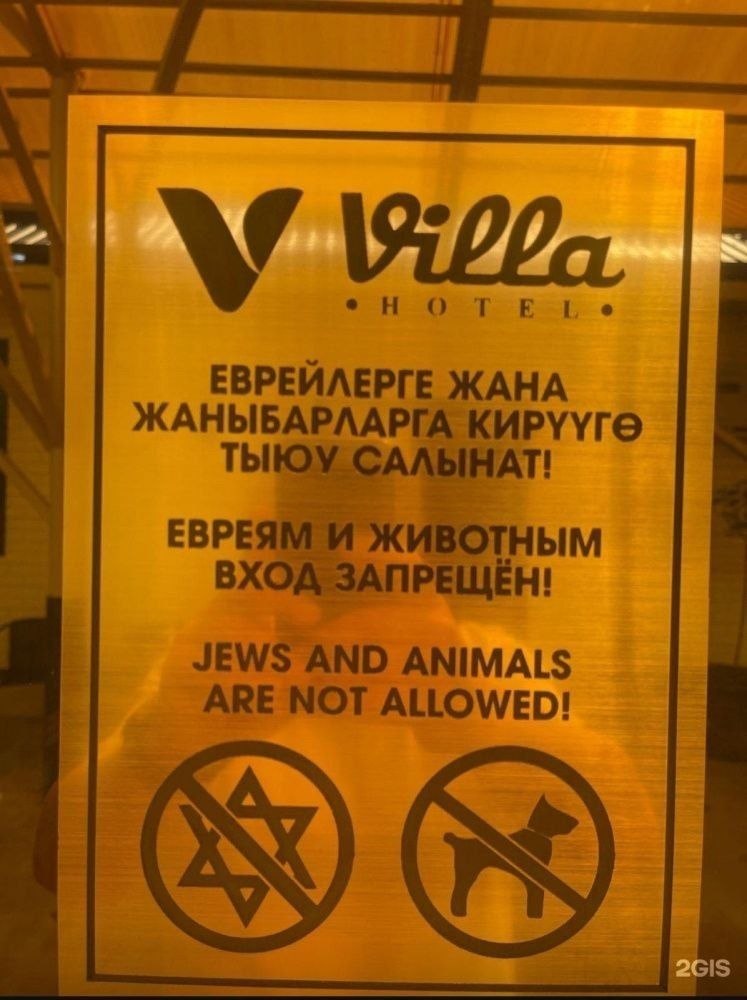 В одном из отелей Оша была обнаружена табличка, запрещающая вход «евреям и животным».