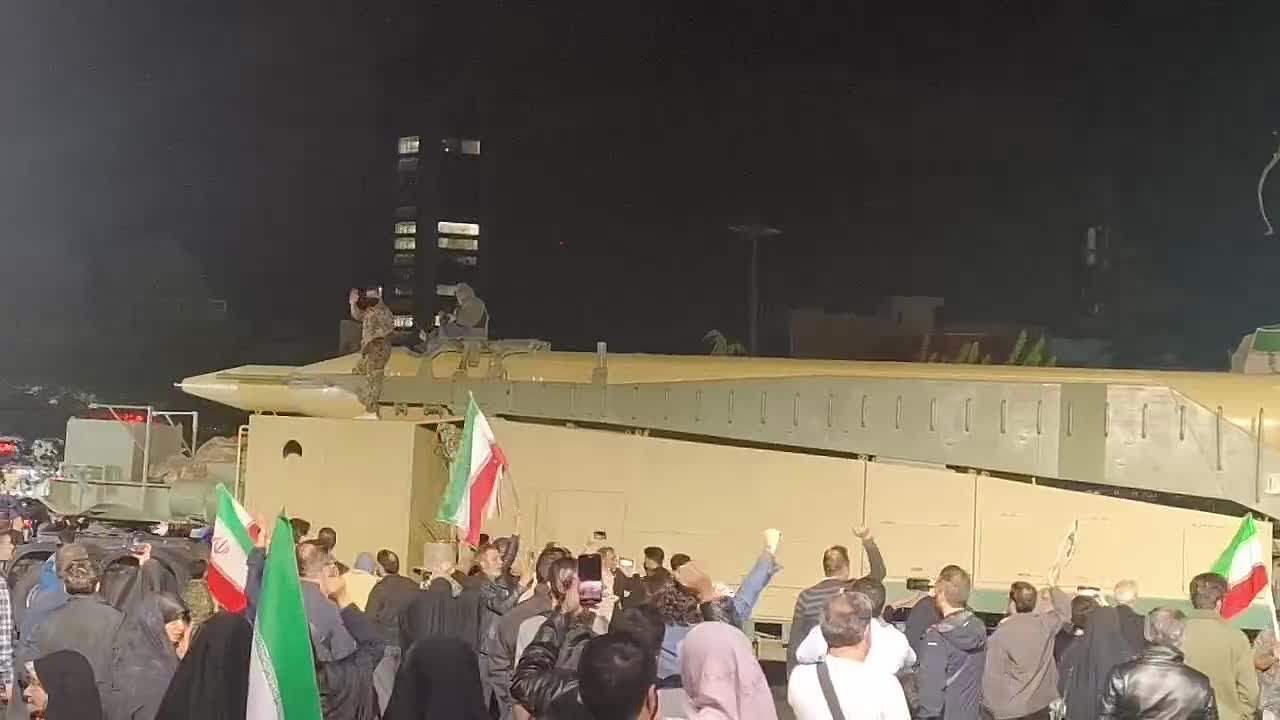 На улицах столичного Тегерана в Иране этим вечером, как на парад, выкатились многочисленные ракетные пусковые установки, готовые к пуску