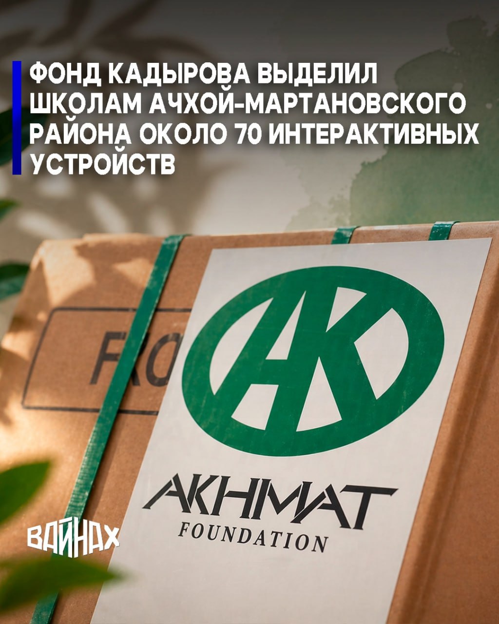 «Благотворительная акция от Регионального общественного фонда имени Первого Президента Чеченской Республики, Героя России Ахмата-Хаджи Кадырова вновь коснулась Ачхой-Мартановского района.Общеобразовательные учреждения получили новое техническое оборудование - 26 интерактивных панелей и 40 ноутбуков. Теперь ребята смогут более качественно улучшать свои знания»,- отметил министр.