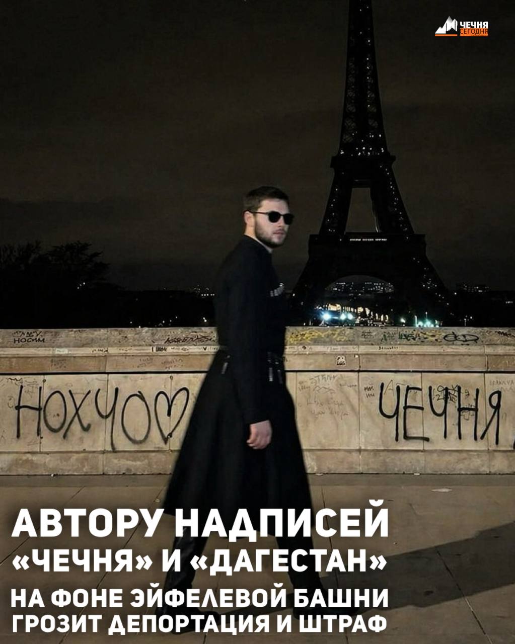Полиция Парижа вычислила уличного художника, который сделал надписи "Чечня", "Дагестан", "Грузия" на фоне Эйфелевой башни, и теперь ищет его, сообщают СМИ.