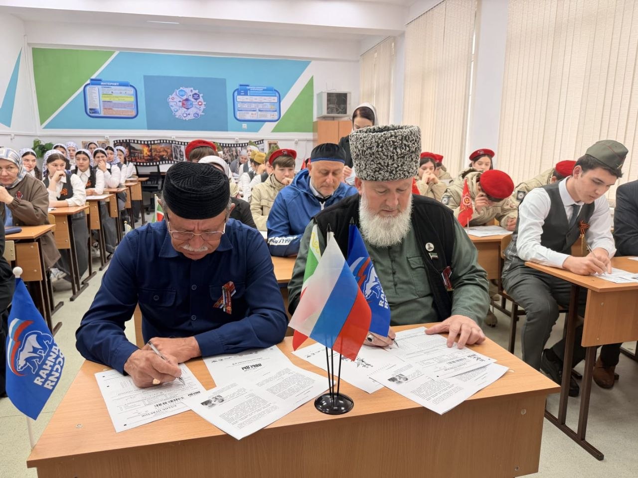 По завершении мероприятия гости выразили благодарность директору школы Марху Ирбиевой и её коллективу за отличную организацию «Диктанта Победы» и сделали совместное памятное фото.