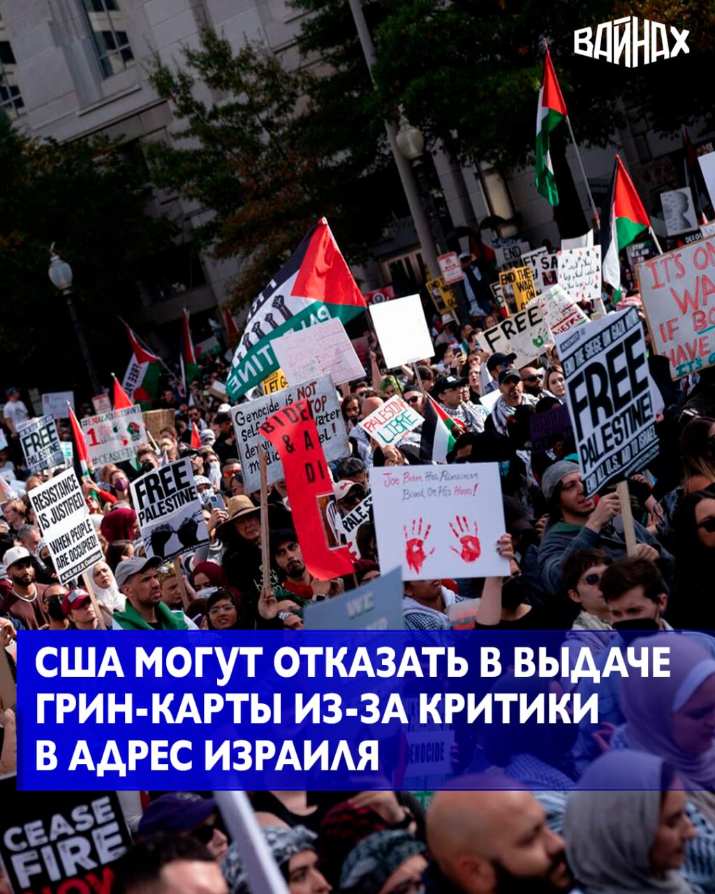 Отмечается, что власти США включили критику в адрес Израиля в список «потенциально дисквалифицирующих факторов» при рассмотрении прошений о предоставлении грин-карты.