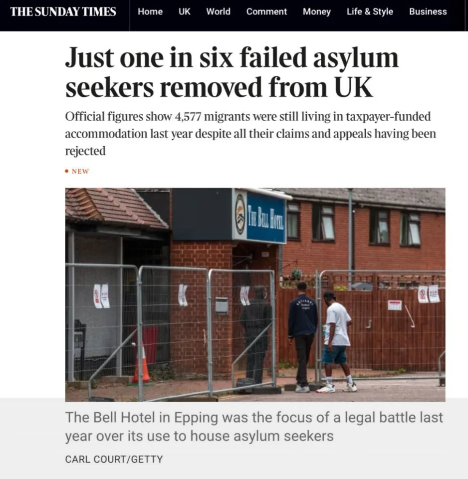 Лишь каждый шестой иностранец, которому отказали в убежище, был депортирован из Британии. Власти выслали на родину 11 631 человек, несмотря на то, что отклонили более 80 тыс. прошений.