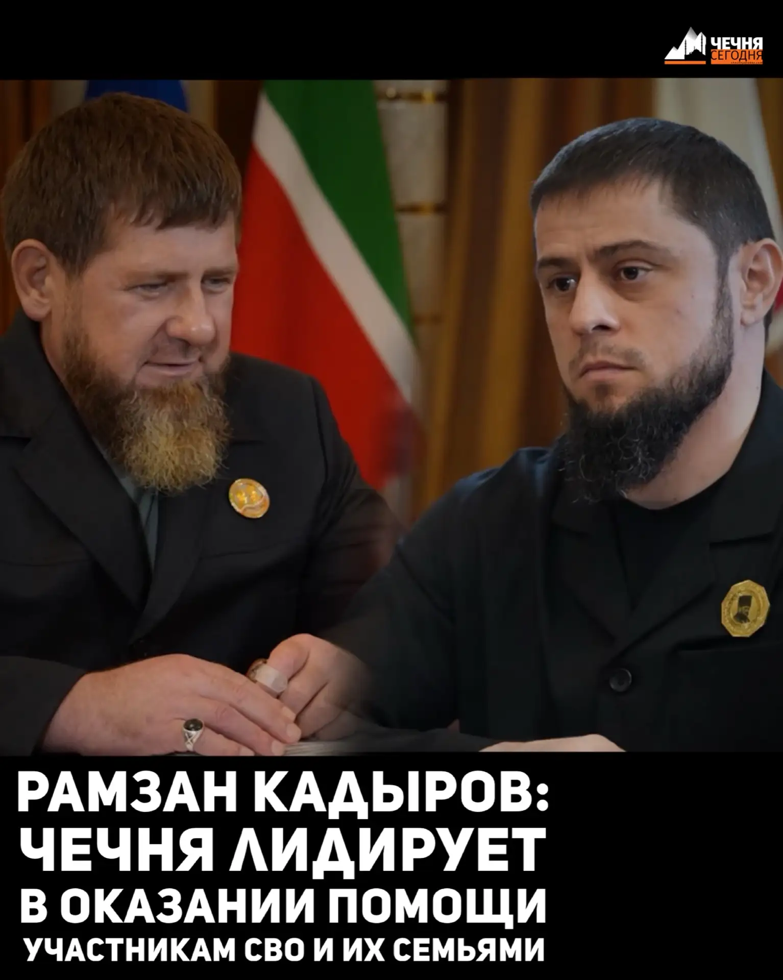 Чеченская Республика находится в числе лидеров по оказанию помощи участникам СВО и их семьям, сообщил Глава региона Рамзан Кадыров по итогам рабочей встречи с заместителем Председателя Правительства ЧР, министром ЧР по национальной политике, внешним связям, печати и информации Ахмедом Дудаевым.