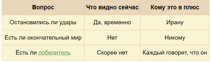 Еще совсем недавно обсуждали возможные сценарии – от полного подавления Ирана до уверенной победы Америки. Но сегодняшний расклад говорит о другом: пауза, перемирие, активные посредники, снижение цен на нефть и даже выдохнувшие рынки. Но кто же все-таки выиграл в этой неочевидной игре?