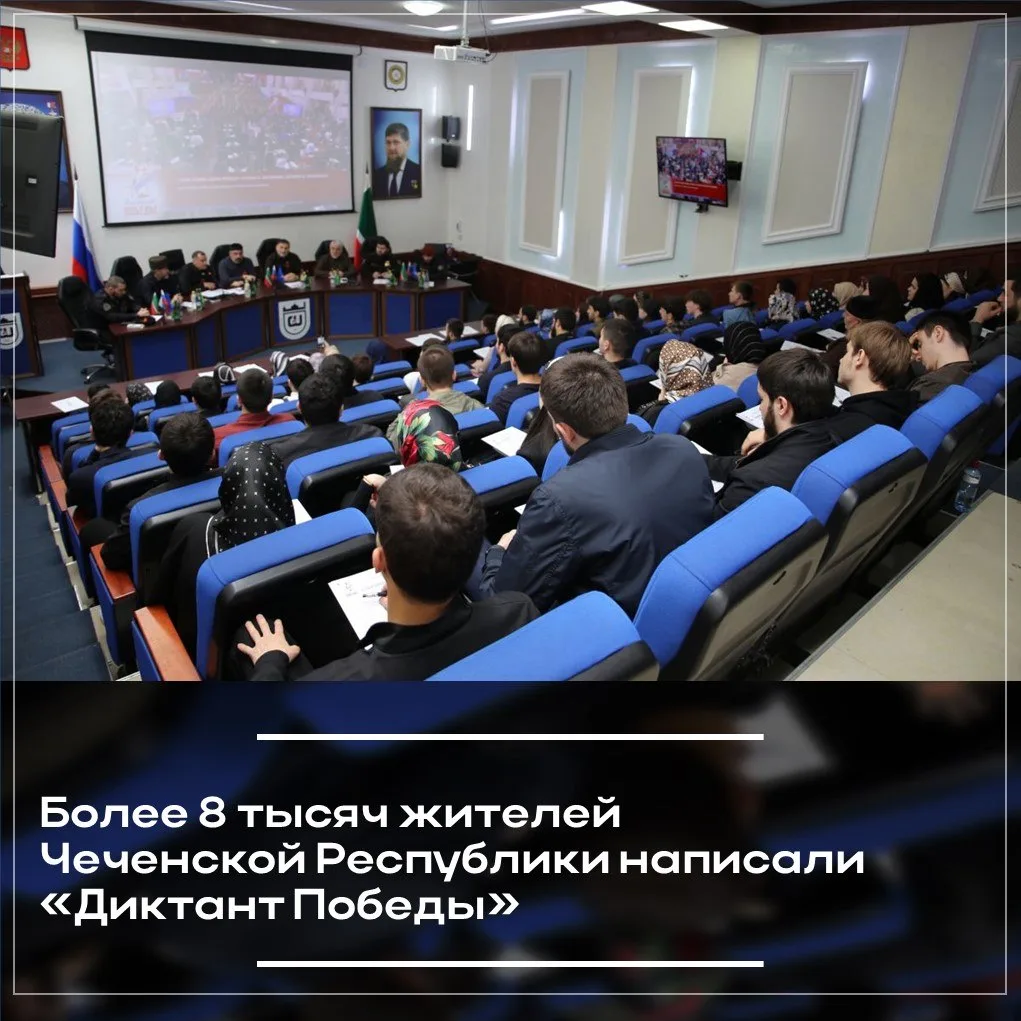 В Чечне прошла историко-просветительская акция «Диктант Победы». К мероприятию присоединилось более 8 тыс. человек. Для проведения акции было задействовано 120 площадок — школы, вузы, воинские части.
