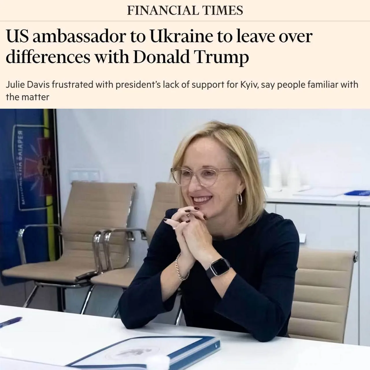 Посол США на территории Украины Джулия Дэвис уходит в отставку из-за «разочарования отсутствием поддержки Киева» со стороны Трампа, — Financial Times.